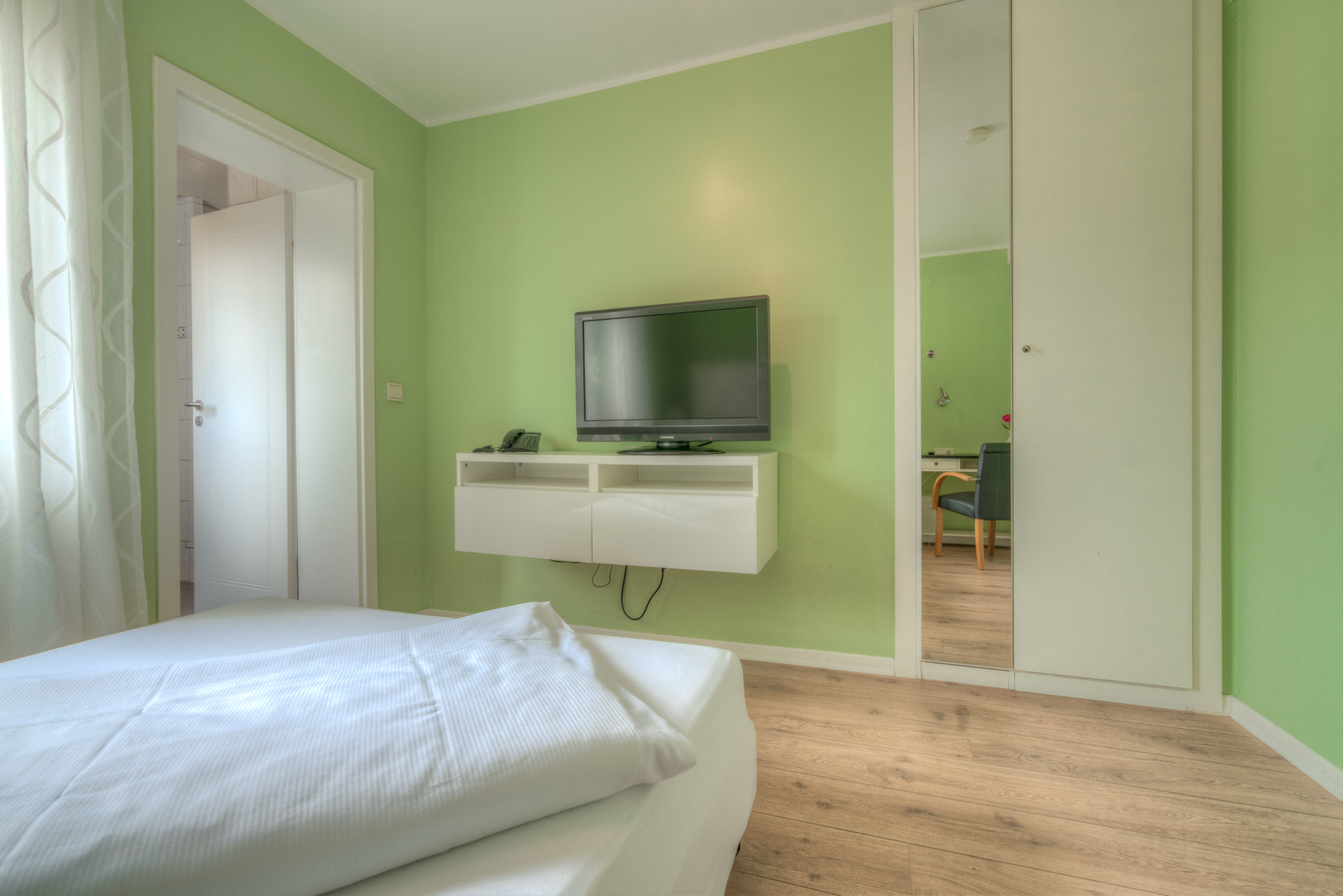 Alle Einzelzimmer sind individuell und komfortabel und mit großem Bett (1,40 mtr. – 1,60 mtr. brt.), Du/WC/Föhn, Schreibtisch, Telefon, Safe, Flachbildschirm incl. kostenlosem Internetzugang per WLAN ausgestattet.