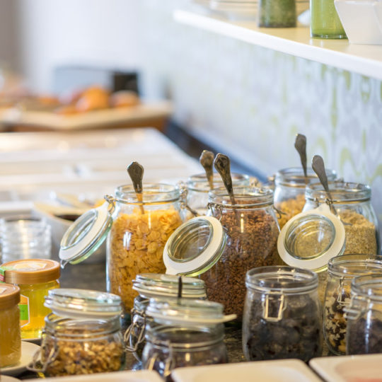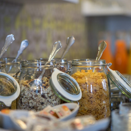 Frischer duftender Kaffee, Tee, knusprige Brötchen, herrliches Brot, Käse- und Wurstaufschnitt, verschiedene Müslis, Säfte, Obst u.v.m. laden zum Verweilen an. Dazu die aktuelle Tageszeitung – was braucht man mehr.